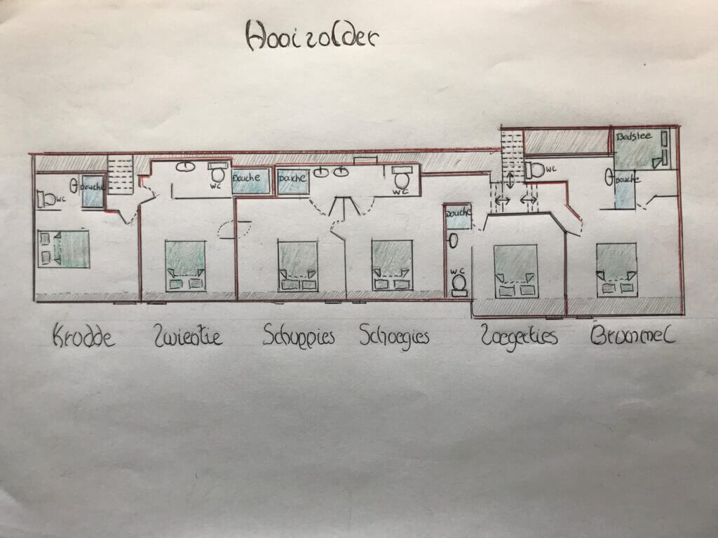 Kamers Krodde, Zwientie en Schuppies & Schoegies zijn meer geschikt voor de deelnemers die 's avonds nog graag gezelschap en gezelligheid opzoeken (ivm geluid vanuit de woonkamer).